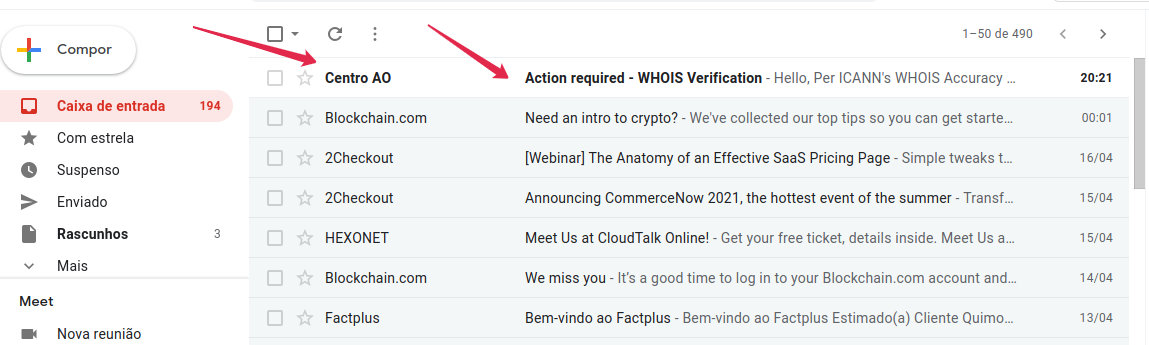 Talvez você que já registou algum domínio com outra empresa possa dizer que nunca recebeu este correio eletrônico a pedir para confirmar a propriedade